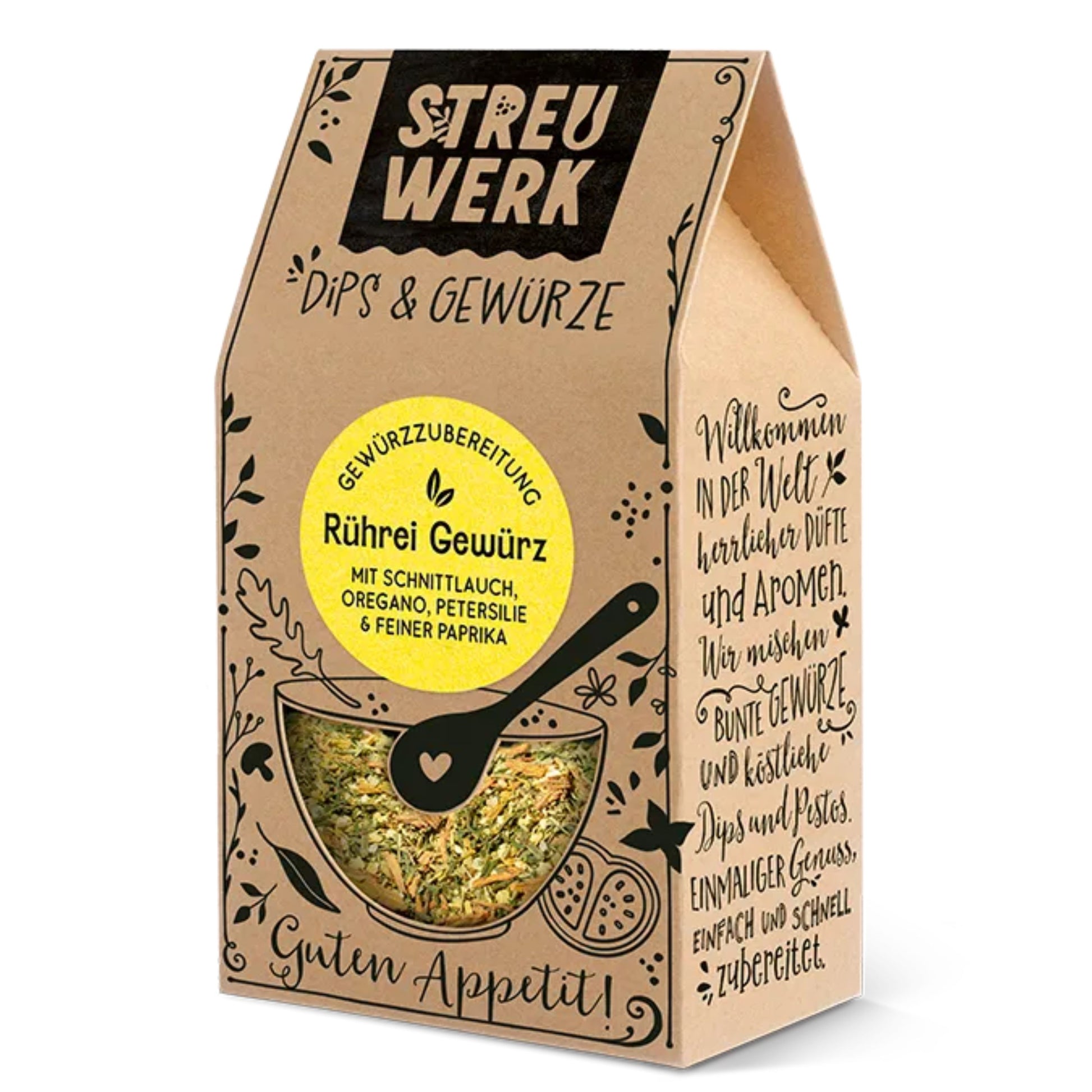 Das "Rührei Gewürz" vereint Tomate, Paprika, Meersalz, Fleur de Sel, Schnittlauch, schwarzen Pfeffer, Oregano und Petersilie zu einer harmonischen Mischung, die jedes Rührei perfekt abrundet. Diese sorgfältig ausgewählten Zutaten verleihen dem Eigericht eine frische und kräuterreiche Note, ergänzt durch eine subtile Schärfe und Salzigkeit. Die Mischung ist einfach anzuwenden und macht aus einem einfachen Rührei ein kulinarisches Erlebnis. Ideal für den Verkauf in hübschen Verpackungen, bietet das "Rührei Gewürz" eine wunderbare Möglichkeit, Alltagsgerichte mit wenig Aufwand zu bereichern.